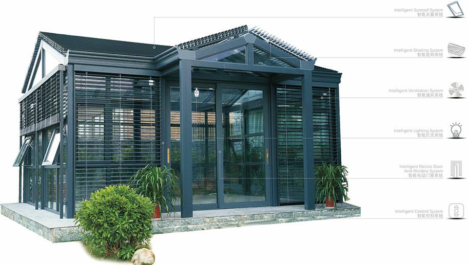 7. 铝型材断桥隔热技术:大大提高了阳光房的隔热保温性能,避免阳光房在夏天变成"桑拿房",冬天成了"急冻室"。